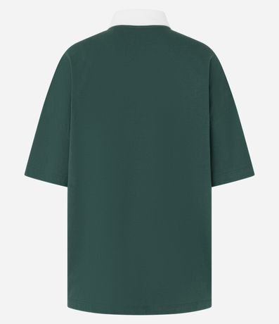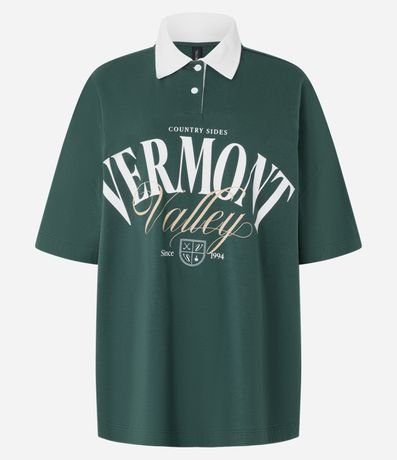 Ref: Camisa polo feminina confeccionada em algodão mais sustentável, no modelo over. Possui gola contrastante, com botões, manga curta e estampa lettering "Vermont Valley".