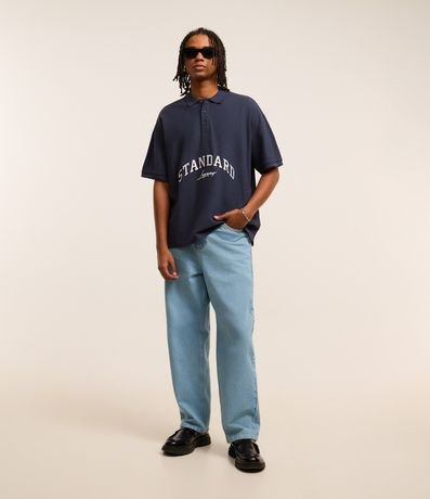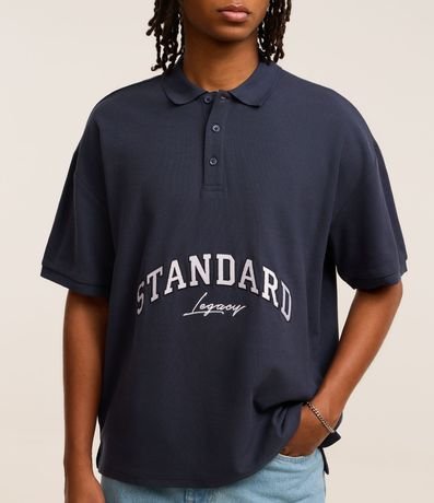 Ref: Camisa polo masculina confeccionada em algodão mais sustentável no modelo oversized, possui gola colarinho, com abotoamento, manga curta, com cava deslocada, bordado lettering e efeito lavado.