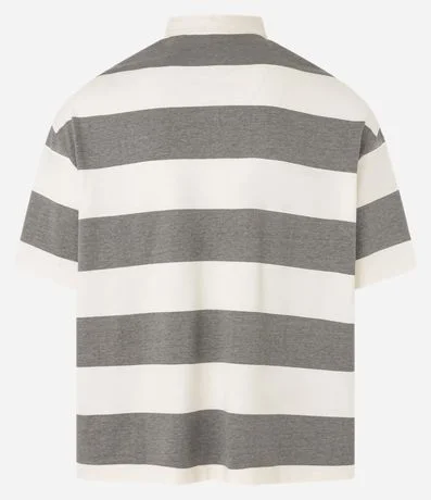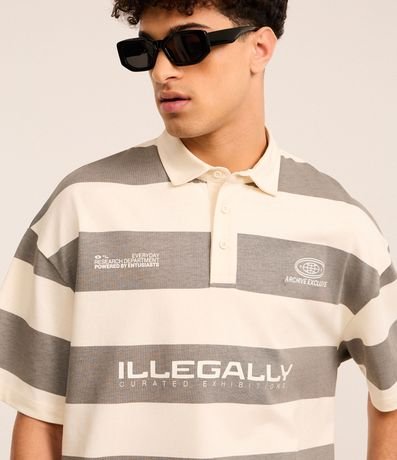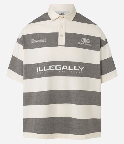 Ref: Camisa polo masculina, confeccionada em algodão mais sustentável com boas práticas ambientais, no modelo oversized. Possui gola com botões, manga curta, estampa lettering e listras largas.