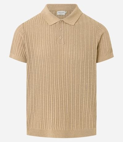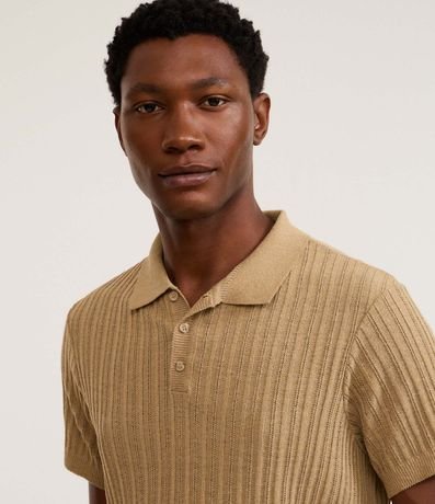 Ref: Camisa polo masculina confeccionada em poliéster com algodão mais sustentável, no modelo regular. Possui gola com botões, manga curta e texturizada.