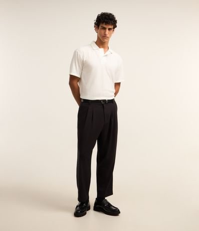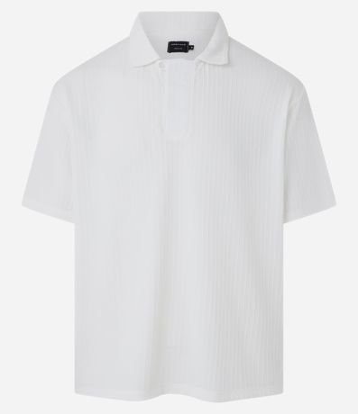 Ref: Polo masculina com abotoamento vista oculta, manga curta e textura.