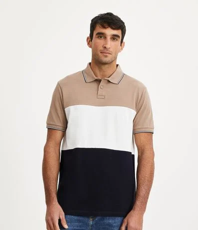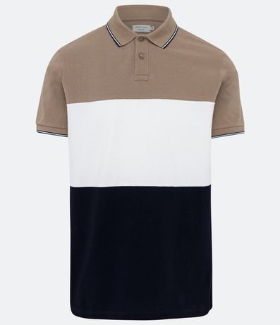 Camisa Polo Regular em Algodão com Blocos de Cor e Manga Curta