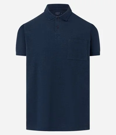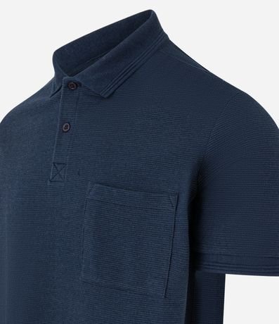 Ref: Camisa masculina confeccionada em algodão mais sustentável com boas práticas ambientais, no modelo regular. Possui gola polo, com botões, manga curta, bolso e texturizada.