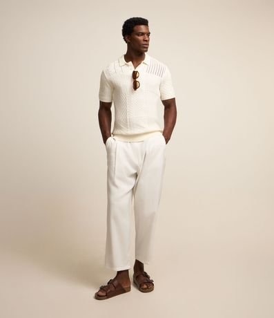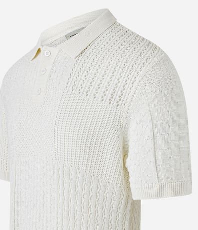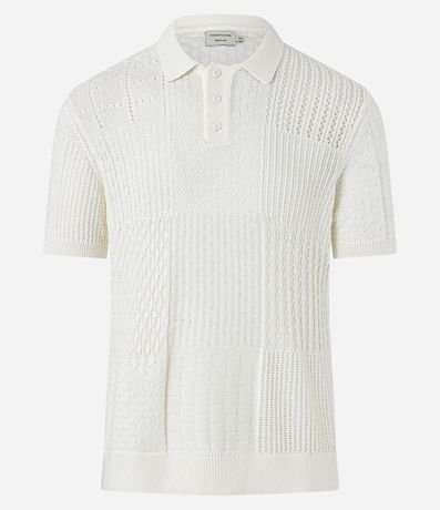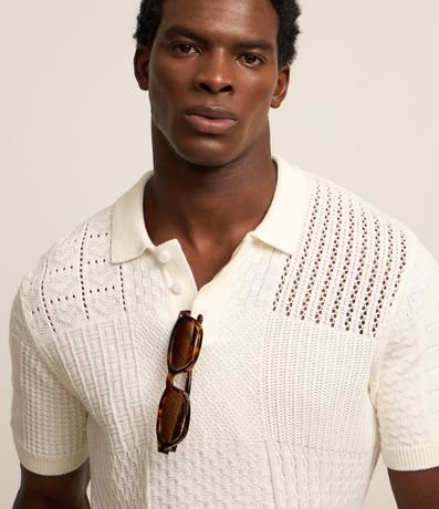 Ref: Polo regular masculina confeccionada com material mais sustentável, gola com lapela e abotoamento. Peça com manga curta e textura patchwork.