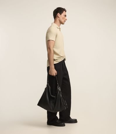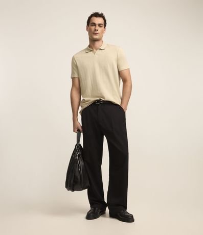 Polo masculina, confeccionada em algodão, gola com lapela, manga curta, textura.