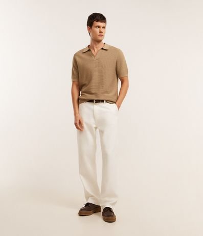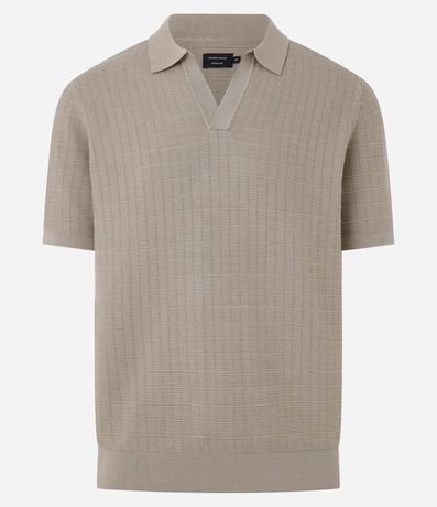 Camisa masculina polo confeccionada em algodão mais sustentável no modelo regular, possui gola em v, manga curta e texturizada.