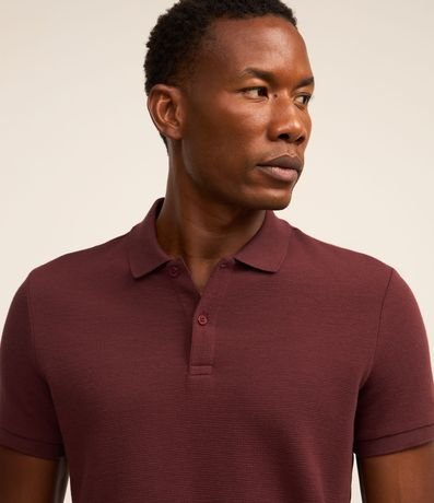 Camisa Polo Slim com Botões e Textura Canelada