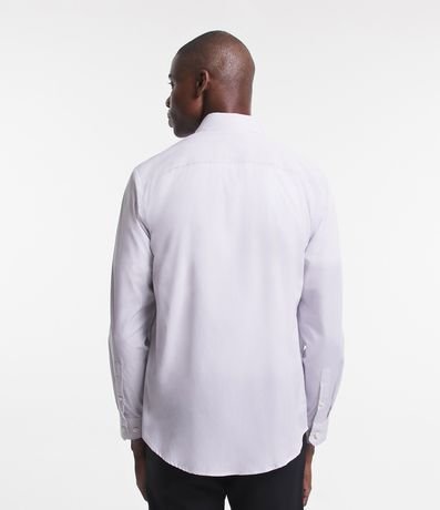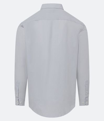 Camisa masculina de modelo regular, confeccionada em um mix de algodão mais responsável e poliéster, possui gola colarinho tradicional e mangas longas.