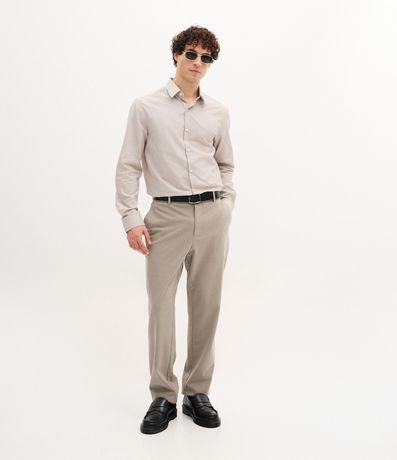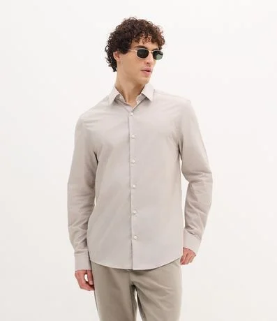 Ref: Camisa masculina de modelo regular, confeccionada em um mix de algodão mais responsável e poliéster, possui gola colarinho tradicional e mangas longas.