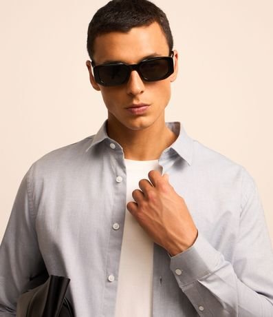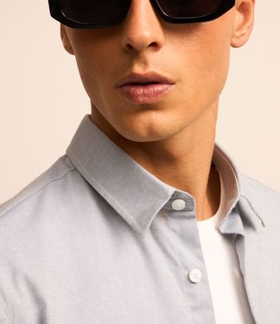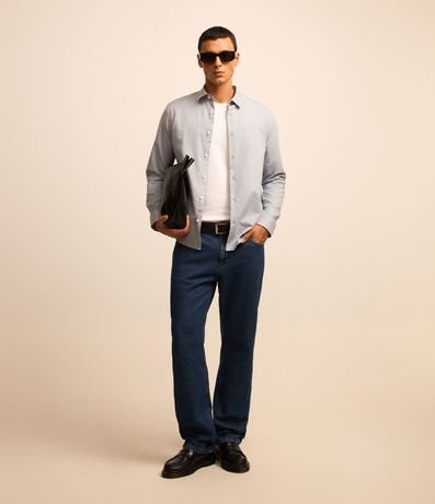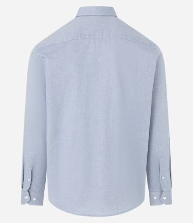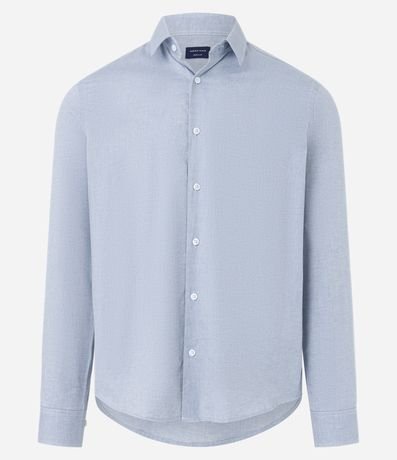 Ref: Camisa masculina, modelo regular, confeccionado em algodão mais sustentável, gola colarinho, manga longa, sem estampa.