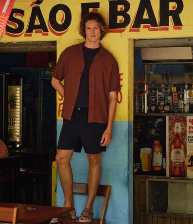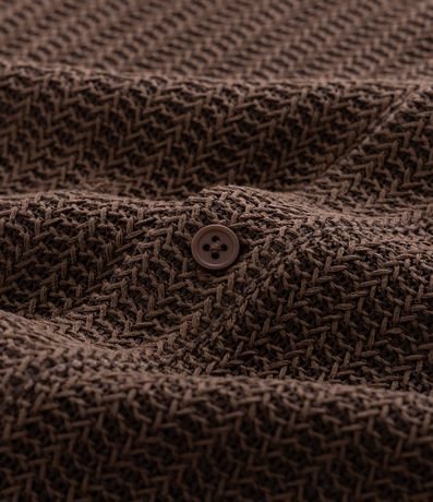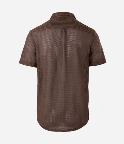Camisa regular com mangas curtas e gola colarinho. Possui abotoamento frontal e sua textura trás um efeito de crochê para a peça.