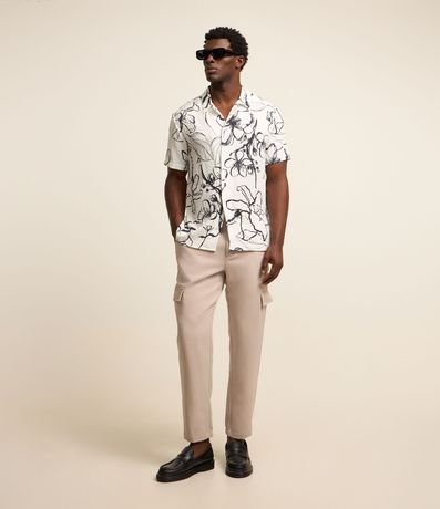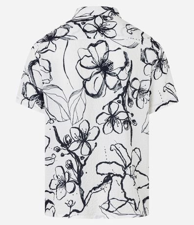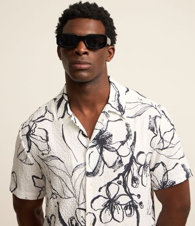 Ref: Camisa masculina no modelo regular, gola com lapela, abotoamento frontal, manga curta, textura e estampa floral.