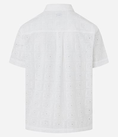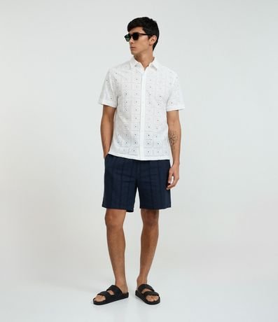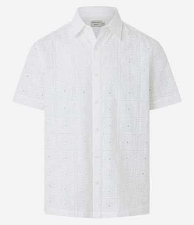 Camisa masculina confeccionada em algodão mais sustentável, no modelo regular. Possui gola colarinho, manga curta, abotoamento frontal e bordado de flores.