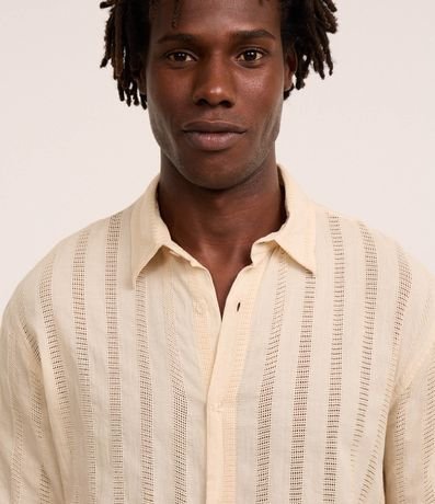 Ref: Camisa masculina regular, confeccionada em algodão mais sustentável, gola com lapela, abotoamento frontal, manga longa. Peça contem textura com furinhos na vertical.