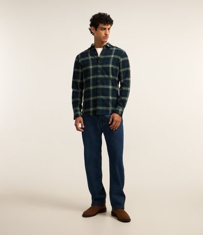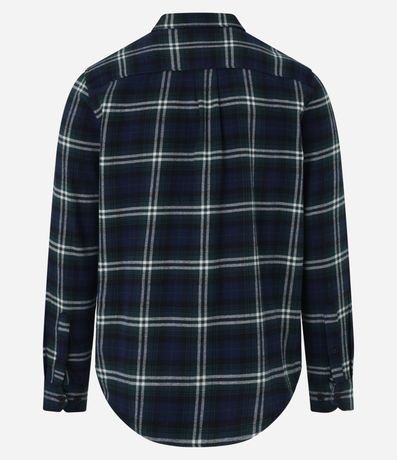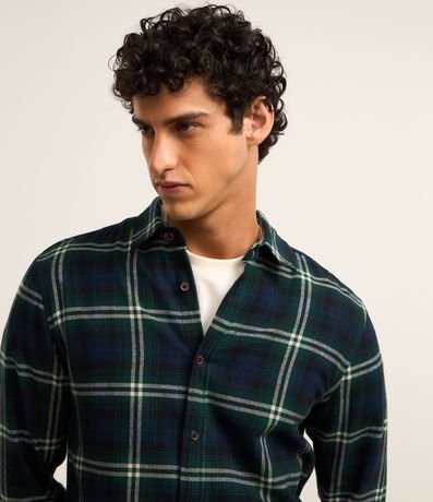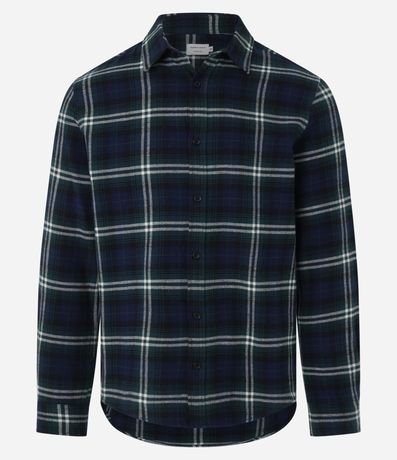 Ref: Camisa regular masculina, confeccionada em algodão mais sustentável. Peça com gola colarinho, abotoamento frontal, manga longa ajustada e estampa xadrez, sendo um modelo clássico.
