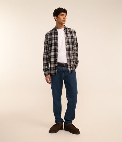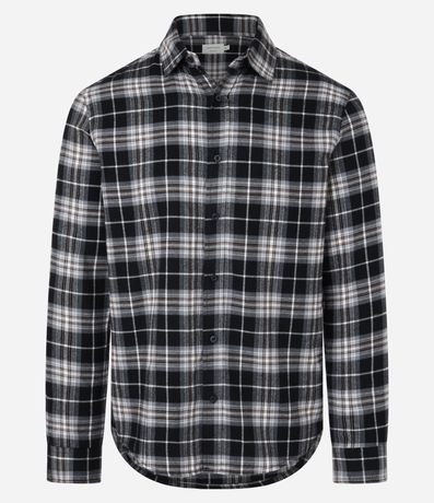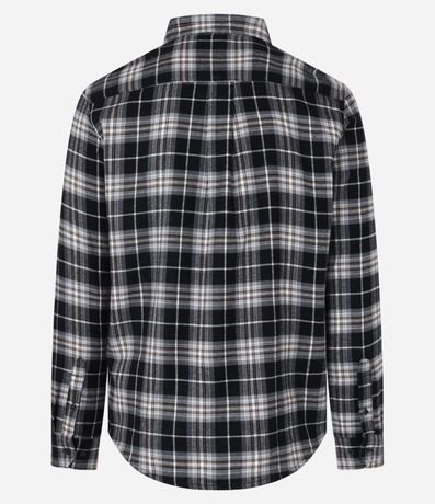 Camisa masculina confeccionada em flanela, com gola colarinho, abotoamento frontal, manga longa. Peça clássica com estampa xadrez.