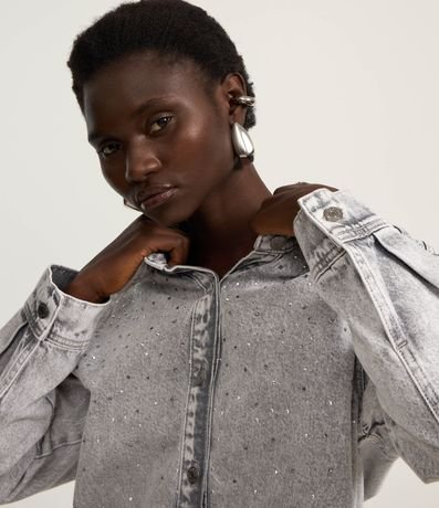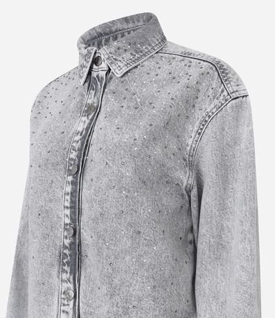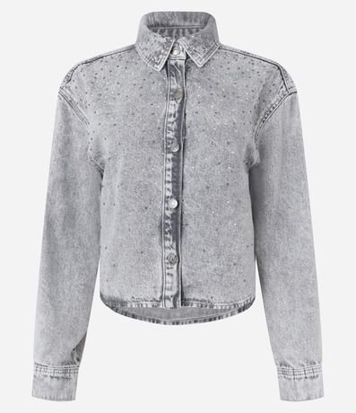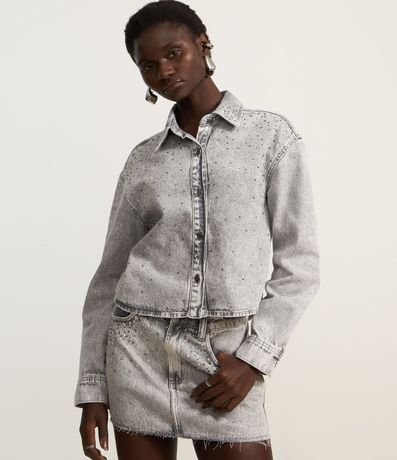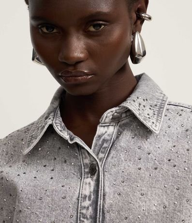 Ref: Camisa regular confeccionada em jeans com algodão bci, produzida em boas práticas ambientais e brilhos aplicados na parte da frente.