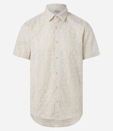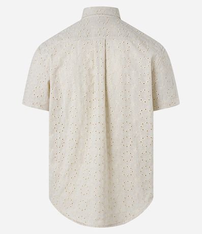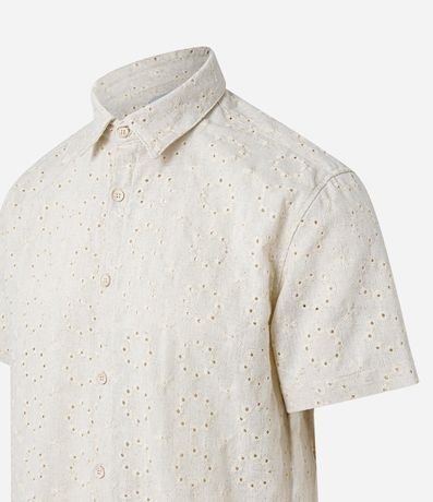 Ref: Camisa masculina confeccionada em laise, gola colarinho, abotoamento frontal, manga curta. Peça no modelo regular com textura e estampa floral.
