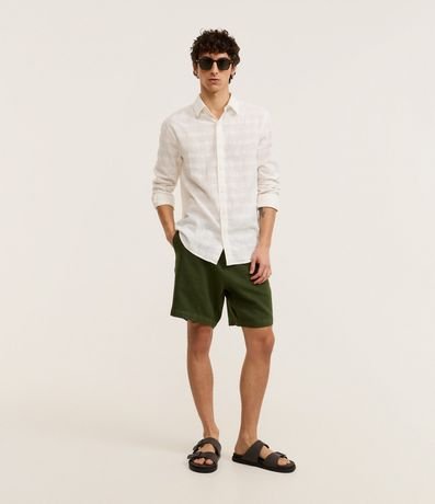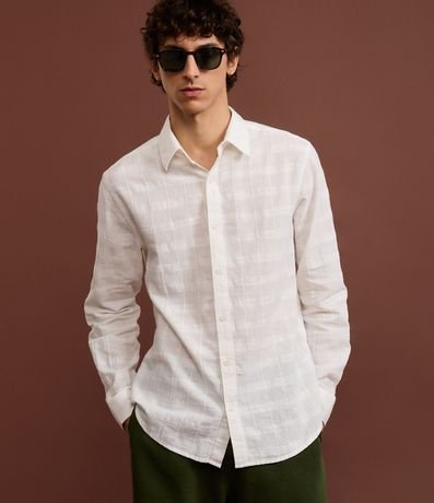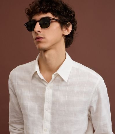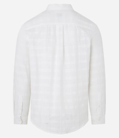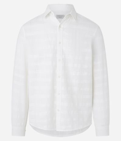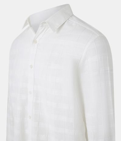 Camisa Regular em Linho com Textura Grid e Manga Longa