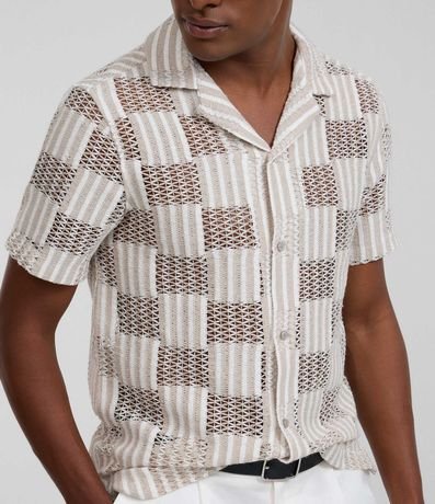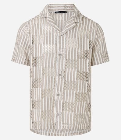 Ref: Camisa masculina confeccionada em renda mais sustentável através de boas práticas ambientais, no modelo regular. Possui gola colarinho, manga curta, abotoamento frontal, estampa bicolor e texturizada.