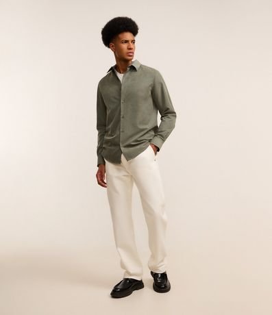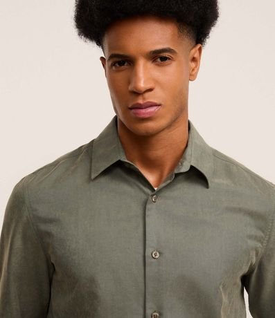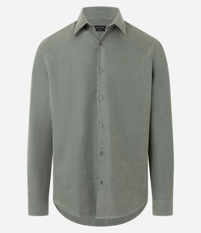 Ref: Camisa masculina confeccionada em sarja, no modelo regular. Possui gola colarinho, manga longa, com punhos ajustados por botões, sem estampa e abotoamento frontal.