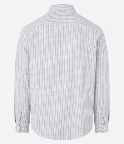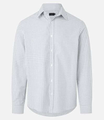 Ref: Camisa masculina confeccionada em algodão mais sustentável, com gola tradicional. Peça no modelo regular com manga longa ajustada e estampa xadrez grid.
