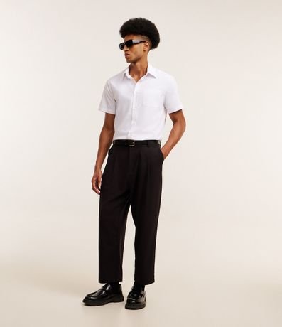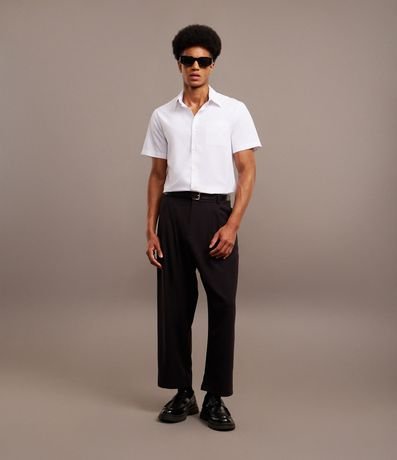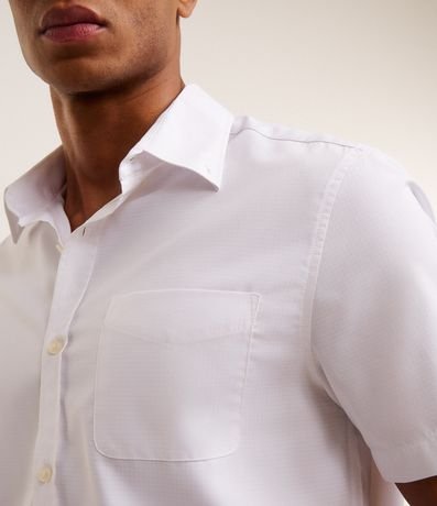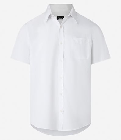 Camisa masculina confeccionada em tricoline com fibra de bambu, no modelo regular. Possui gola colarinho, manga curta, abotoamento frontal, sem estampa e com bolso.