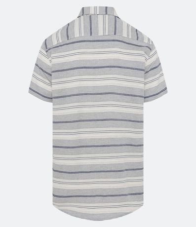 Camisa regular masculina, confeccionada em viscose mais sustentável, com gola colarinho, mangas curtas, abotoamento e estampa de listras horizontais.