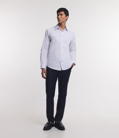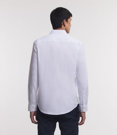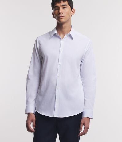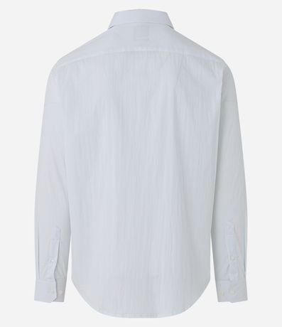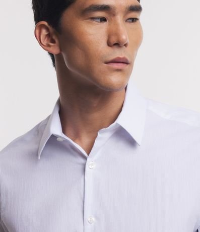 Camisa regular social com gola colarinho e mangas longas. Para um look com discrição mas repleto de estilo, aposte nesta peça e vista-se com completa elegância. A textura maquinetada de listras do produto traz um diferencial que valoriza muito o visual.
