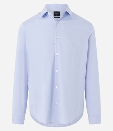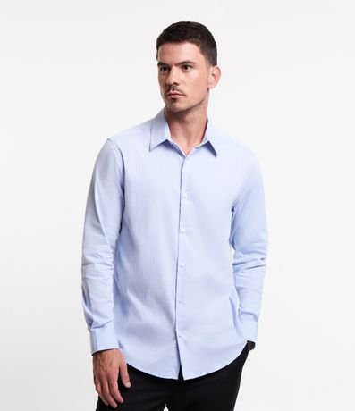 Ref: Camisa regular social com gola colarinho e mangas longas. Para um look com discrição mas repleto de estilo, aposte nesta peça e vista-se com completa elegância. A textura maquinetada de listras do produto traz um diferencial que valoriza muito o visual.
