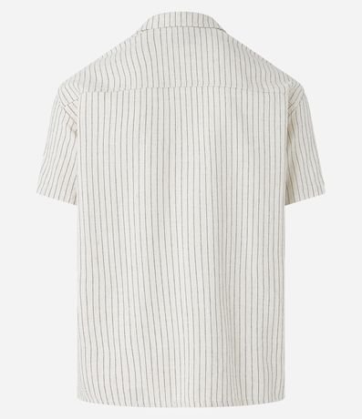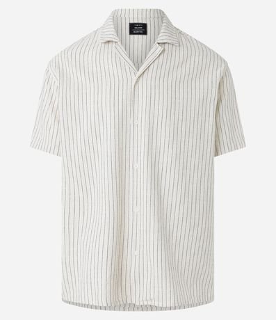 Ref: Camisa relaxed masculina, confeccionada em algodão, com gola colarinho, lapela, manhas curtas, abotoamento frontal e estampa listrada.