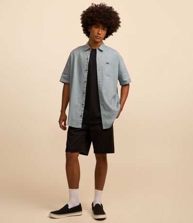 Ref: Camisa manga curta, relaxed, abotoamento frontal, bolso no peito com etiqueta aplicada e confeccionada em cânhamo.
