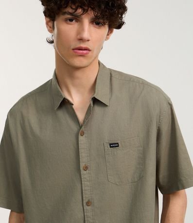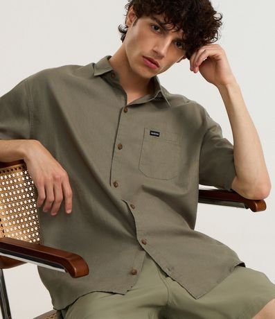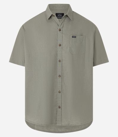 Ref: Camisa manga curta, relaxed, abotoamento frontal, bolso no peito com etiqueta aplicada e confeccionada em cânhamo.