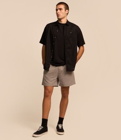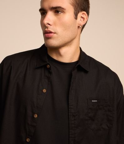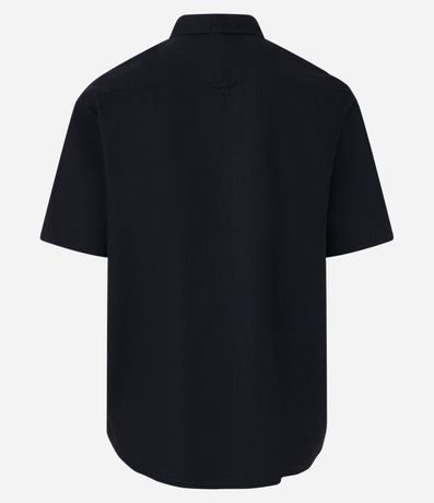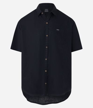 Camisa manga curta, relaxed, abotoamento frontal, bolso no peito com etiqueta aplicada e confeccionada em cânhamo.