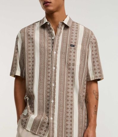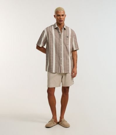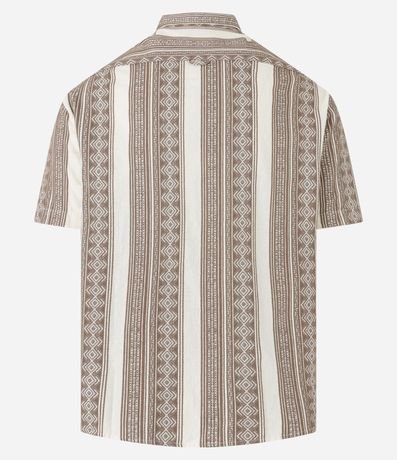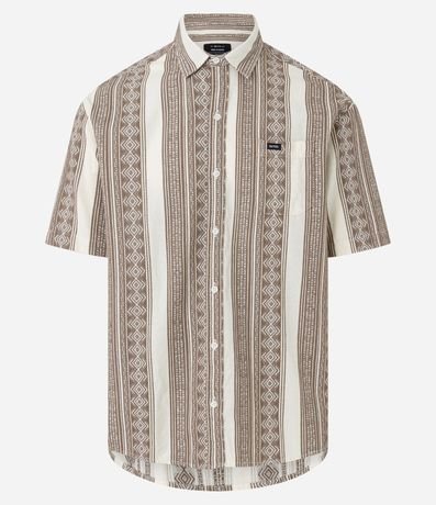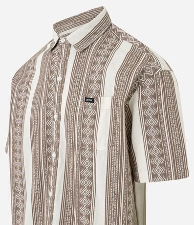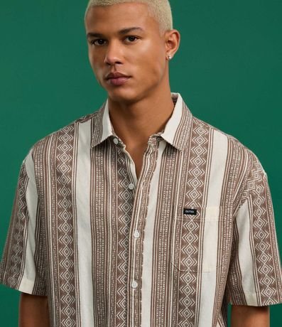 Ref: Camisa masculina confeccionada em jacquard mais sustentável, no modelo relaxed. Possui gola colarinho, manga curta, abotoamento frontal, estampa étnica.