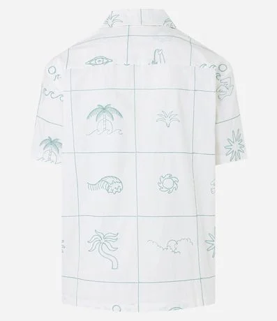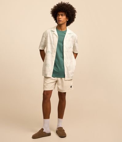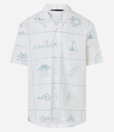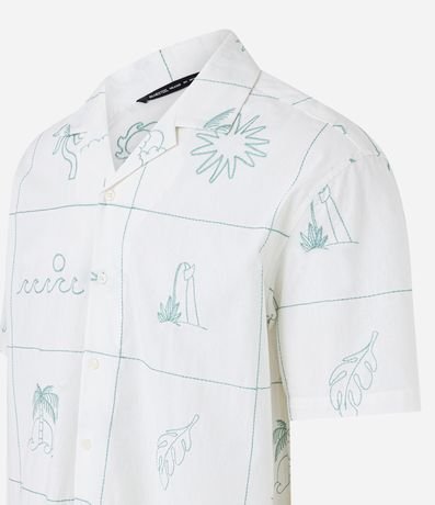 Camisa masculina, confeccionada em material mais sustentável, gola colarinho, manga curta. Peça contém bordado divertido com diversos itens da natureza.