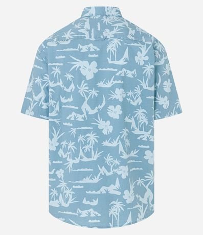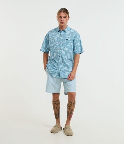 Camisa masculina confeccionada em tricoline mais sustentável, no modelo relaxed. Possui gola colarinho, manga curta, abotoamento frontal, bolso, com etiqueta aplicada e estampa de ilhas.