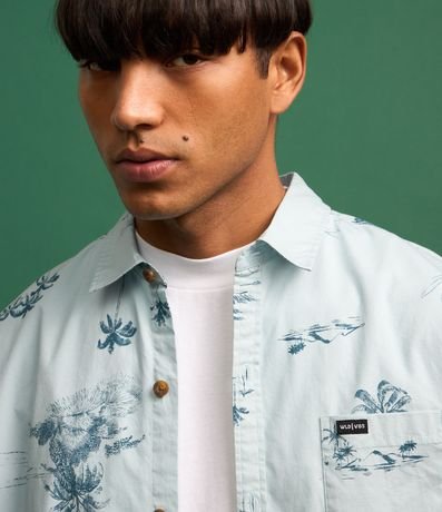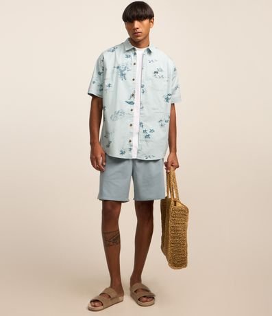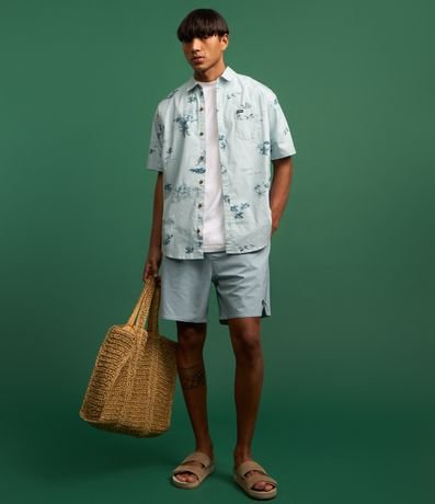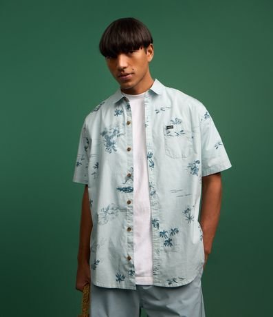 Ref: Camisa masculina confeccionada em tricoline mais sustentávl, com gola colarinho, abotoamento frontal, manga curta. Peça no modelo relaxed com estampa de palmeiras.