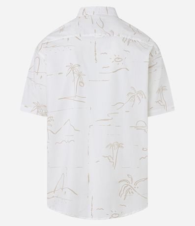 Camisa Relaxed em Tricoline com Estampa Minimalista de Ilha