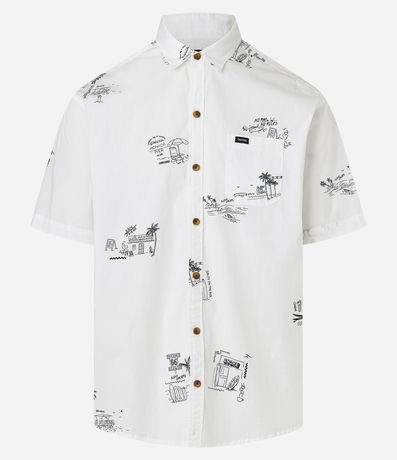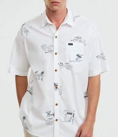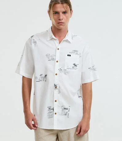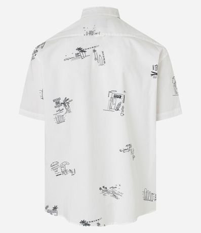 Camisa Relaxed em Tricoline com Estampa Minimalistas de Coqueiros e Ilhas