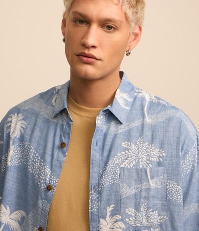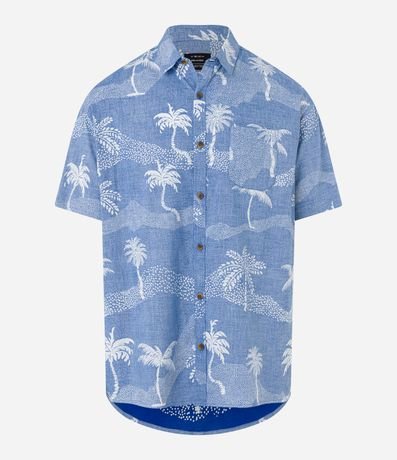 Camisa Relaxed em Viscose com Estampa de Coqueiro