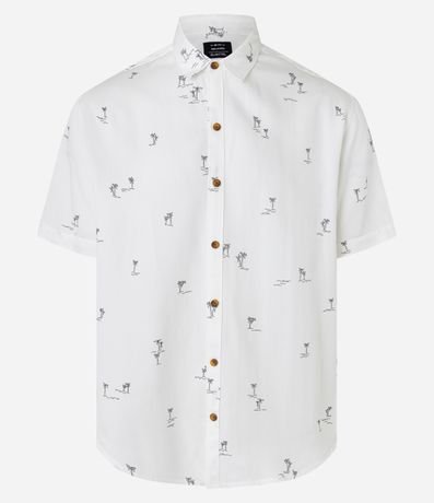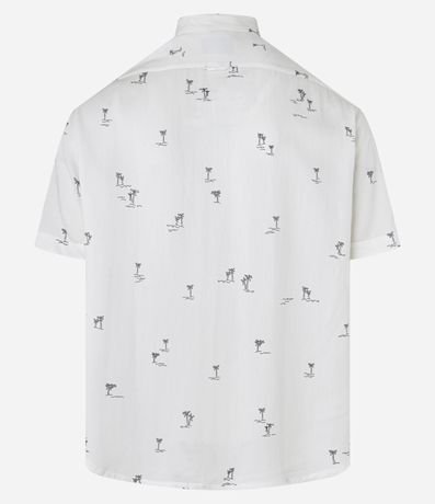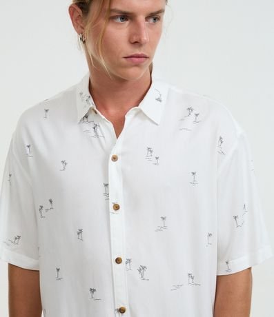 Ref: Camisa masculina confeccionada em viscose mais sustentável, no modelo relaxed. Possui gola colarinho, manga curta, botões contrastantes e estampa de mini coqueiros.