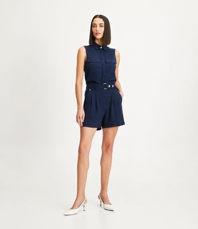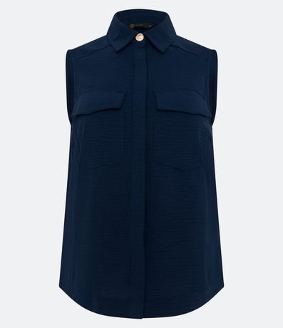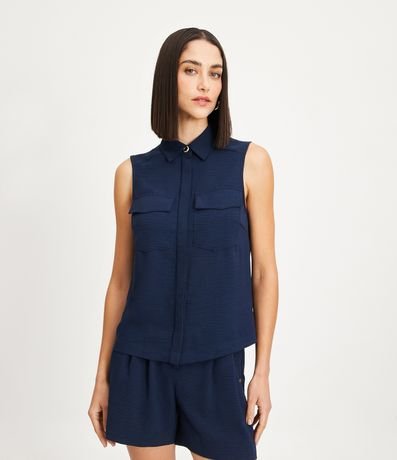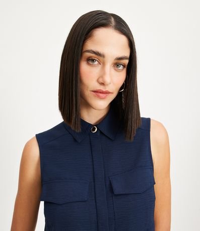 Ref: Camisa sem mangas com textura airflow, colarinho na gola, bolsos frontais e botões escondidos.