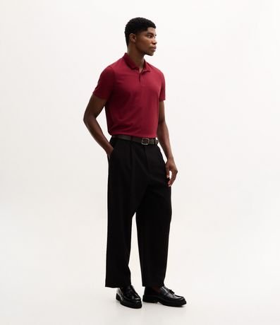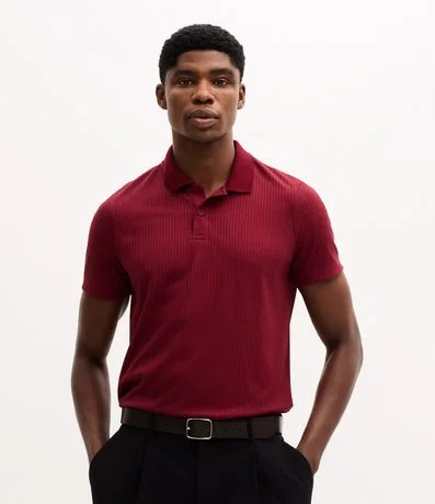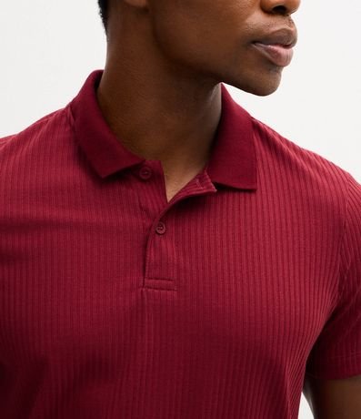 Ref: Camisa masculina de modelo slim, com gola polo, fechamento por botões, mangas curtas e textura canelada.