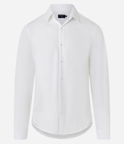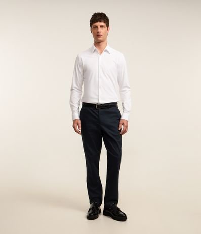 Camisa masculina confeccionada em algodão mais sustentável no modelo slim, gola colarinho, abotoamento frontal com manga longa e botões no punho. Peça com tecnologia Easy Care Performance que permite maior elasticidade, secagem rápida e conforto.