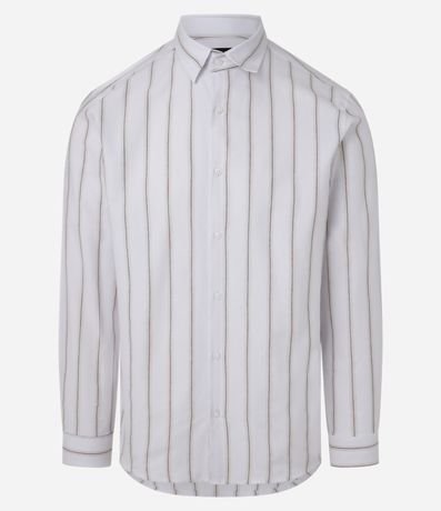Ref: Camisa masculina confeccionada em oxford de algodão mais sustentável com gola colarinho, abotoamento frontal, manga longa. No modelo slim peça contém estampa listrada.