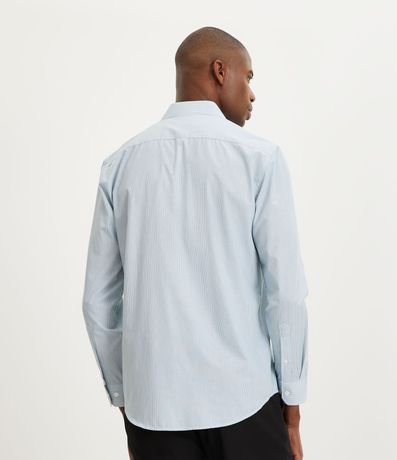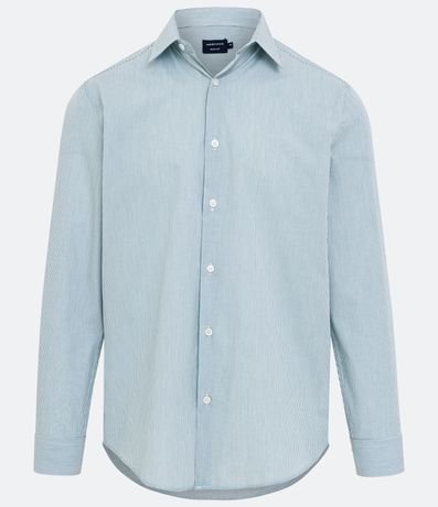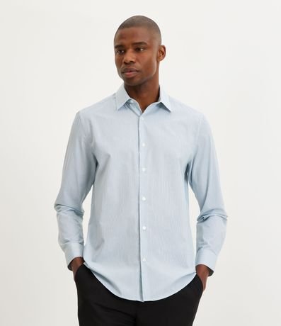 Camisa Slim em Tricoline com Listras e Manga Longa