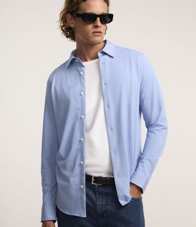 Ref: Camisa masculina no modelo slim, gola tradicional, abotoamento frontal com manga longa e botões no punho. Peça com tecnologia Easy Care Performance que permite maior elasticidade, secagem rápida e conforto.