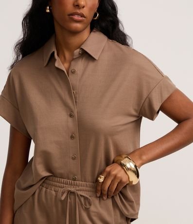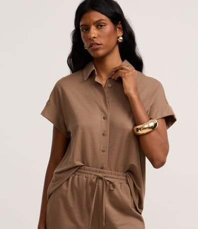 Ref: Camisa texturizada de mangas curtas com recortes, confeccionada em orly, com colarinho na gola e botões frontais.Este produto possui viscose certificada em sua composição, sendo ambientalmente mais responsável.