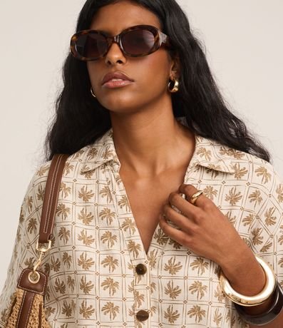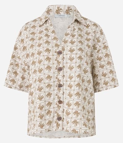 Camisa Texturizada em Viscolinho com Estampa Coqueiros